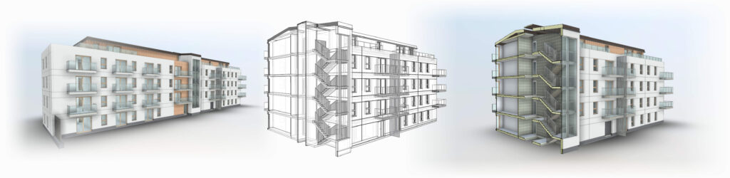 Projekty, stworzone przy użyciu oprogramowania BIM, pozwalają na wydobycie wielu cennych informacji potrzebnych w procesie certyfikacji, tworzenia analiz LCA, modelowania energetycznego, modelowania termicznego itp. W naszej pracowni projektujemy przy użyciu oprogramowania Autodesk RevitProjekt koncepcyjny osiedla mieszkaniowego, 2024.ZOBACZ NASZE PROJEKTYBUILDING INFORMATION MODELINGBIM