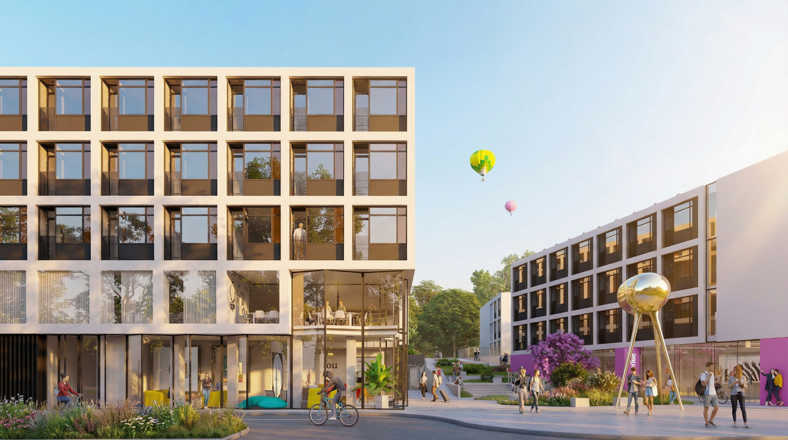 Projekt zakłada powstanie ponad 470 pokoi, w których zamieszkać może około 600 studentów. W obiekcie zaprojektowano przestrzenie coworkingowe, siłownie, część kuchenną, kawiarnie, sklep, a także taras i zielony dach.