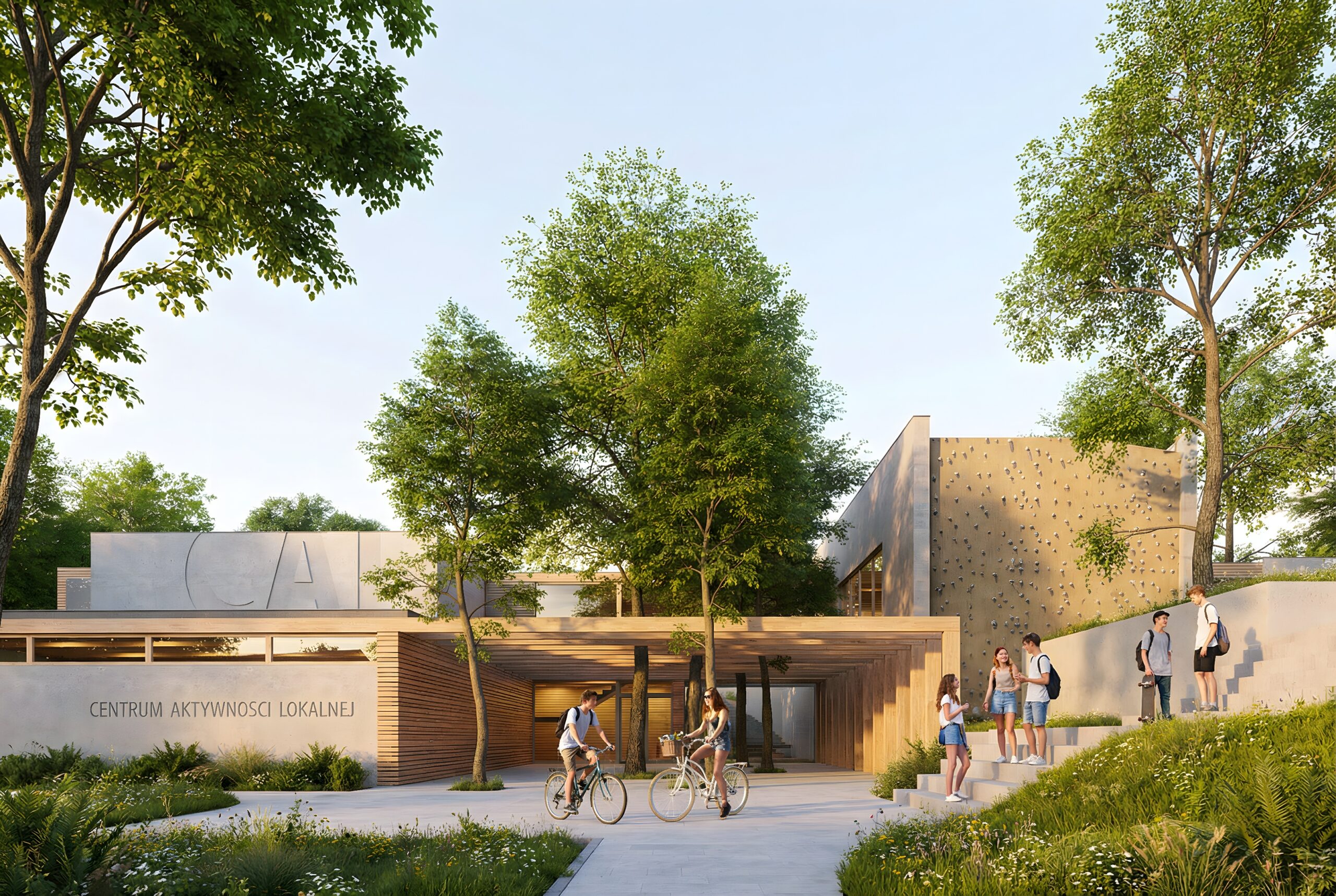 Budynek Centrum Aktywności Lokalnej jest parafrazą drogi. Można przez niego przejść na wylot, aleją drzew. Przejść z ulicy do parku, przejść obok kultury. Można też skręcić i wejść do środka, na drogę do realizacji swoich marzeń.