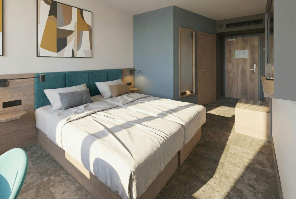 W roku 2024 wykonaliśmy dokumentację nowego standardu dla sieci hotelowej B&B Hotels Polska. W ramach prac zaktualizowaliśmy dotychczas obowiązujący standard hoteli 2 gwiazdkowych oraz przygotowaliśmy nowy standard dla hoteli 3 gwiazdkowych. Opracowania obejmują kompleksowe wytyczne programowe, produktowe, funkcjonalne i techniczne. Sporządzone przez naszą firmę standardy są obecnie wdrażane we wszystkich nowo przygotowywanych i realizowanych na terenie Polski hotelach B&B.