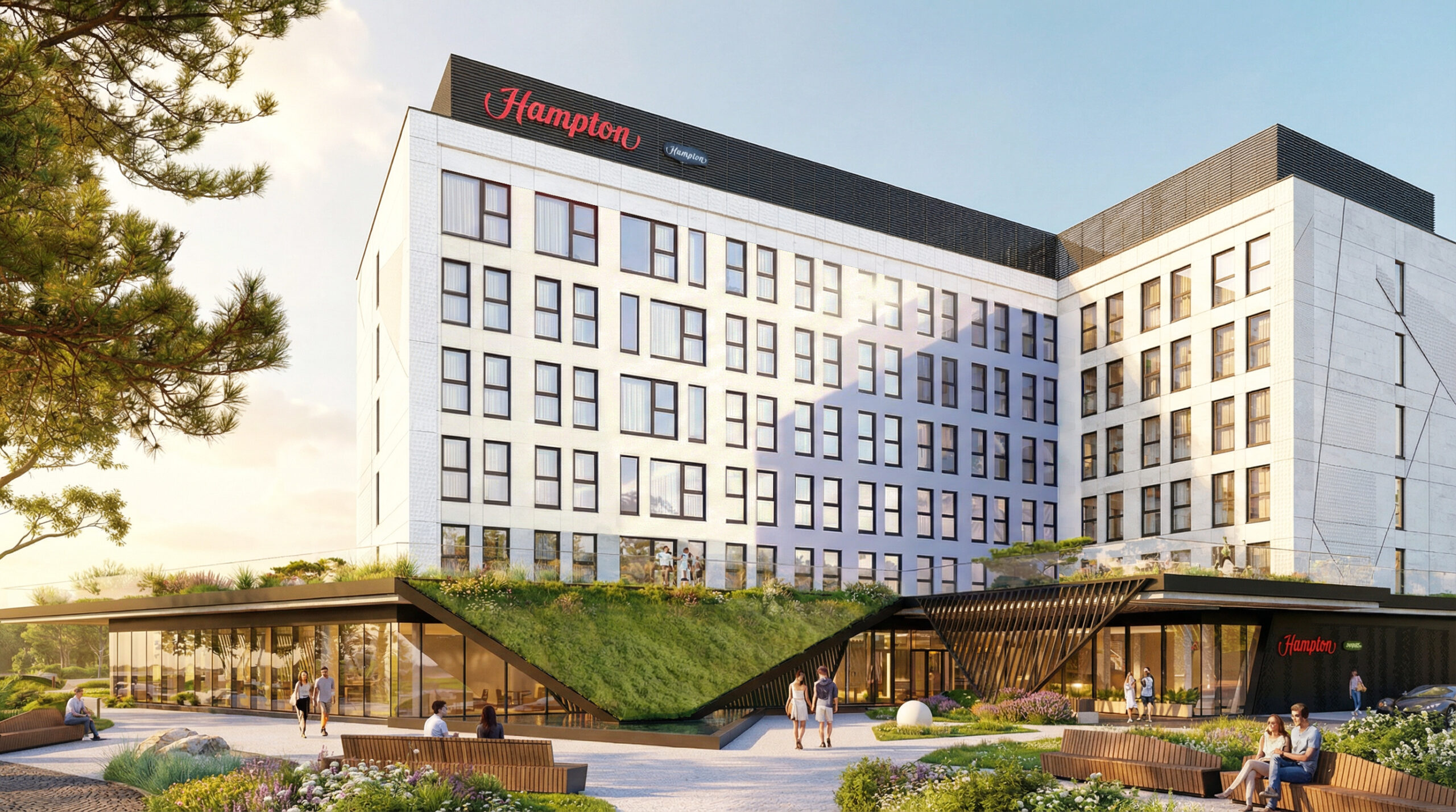 Hotel zaprojektowany zgodnie ze standardem sieci Hampton by Hilton.