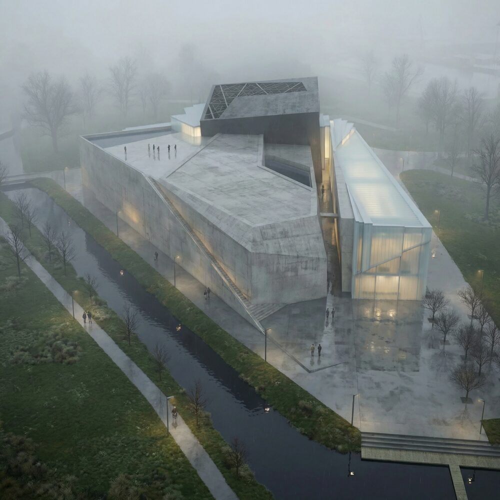 Tworząc koncepcję Muzeum II Wojny Światowej w Gdańsku chcieliśmy, aby zaprojektowany przez nas budynek wywoływał w odbiorcy uczucie niepokoju i przytłoczenia dramatem jaki niesie ze sobą wojna.
