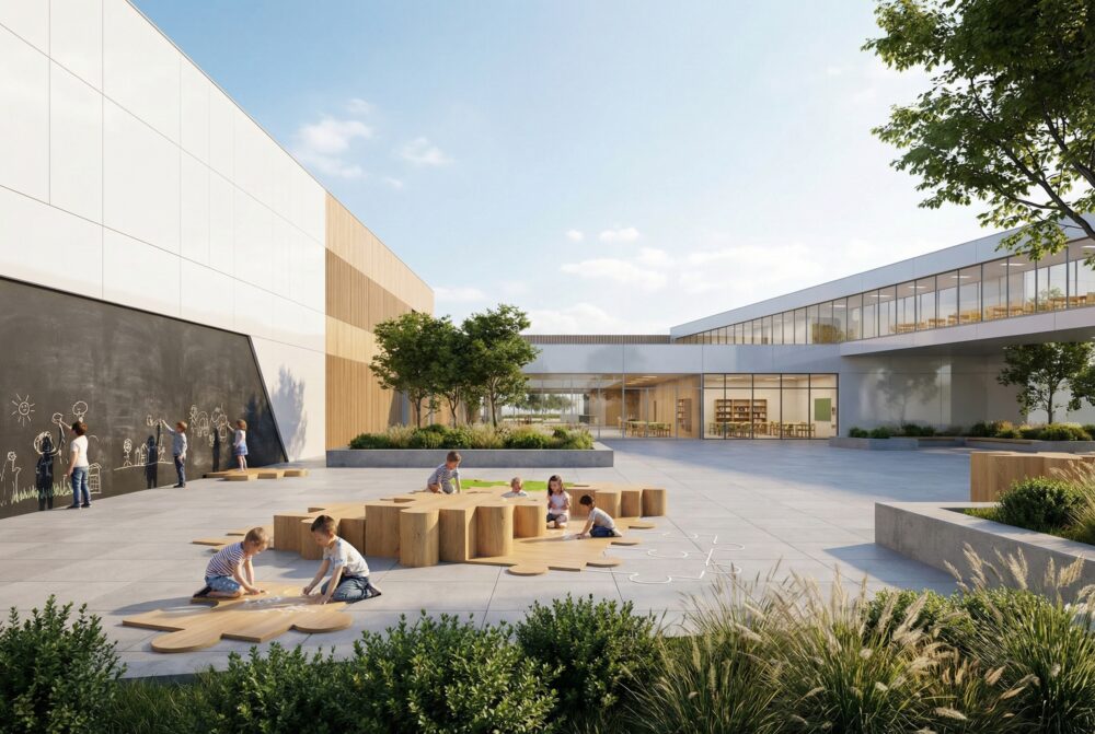 Zespół obiektów edukacyjnych – szkoła, przedszkole, biblioteka, obiekty sportu i rekreacji