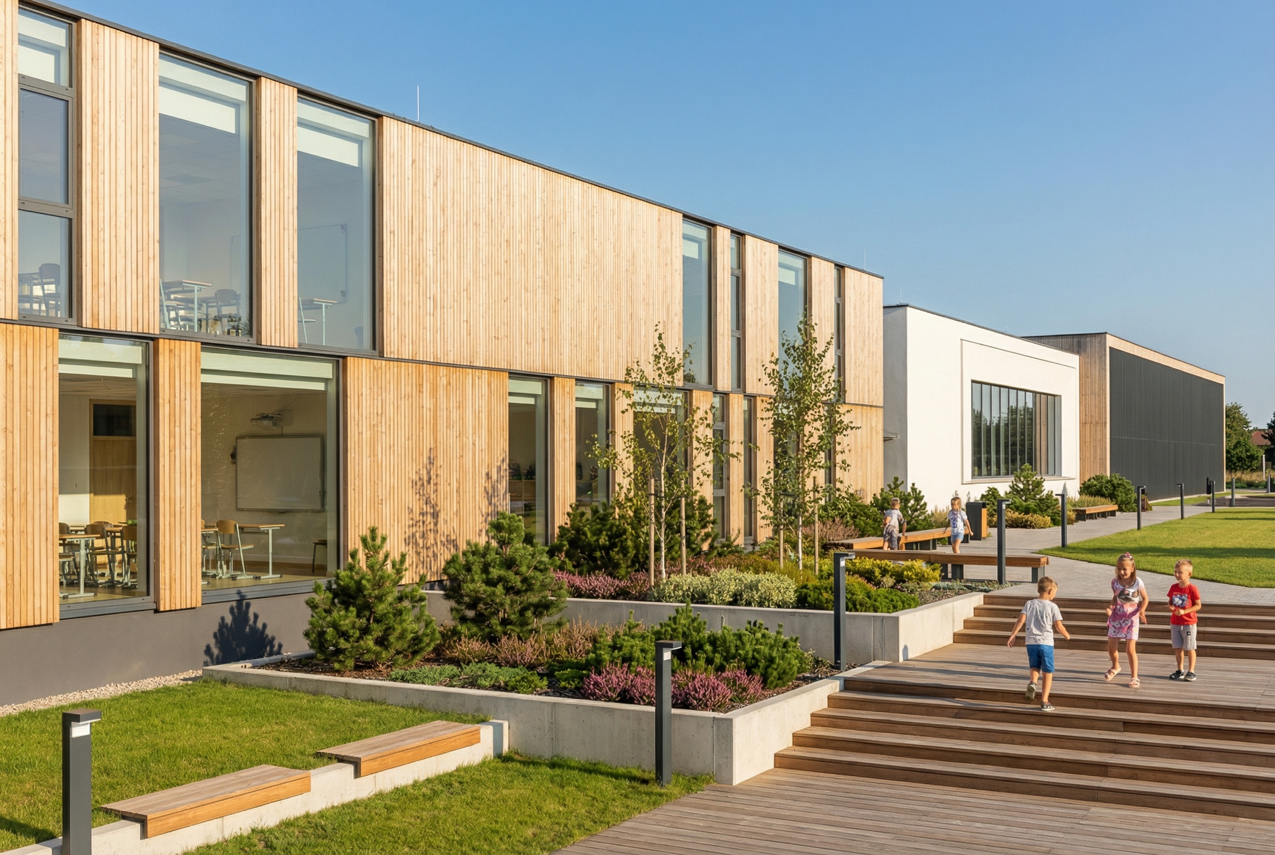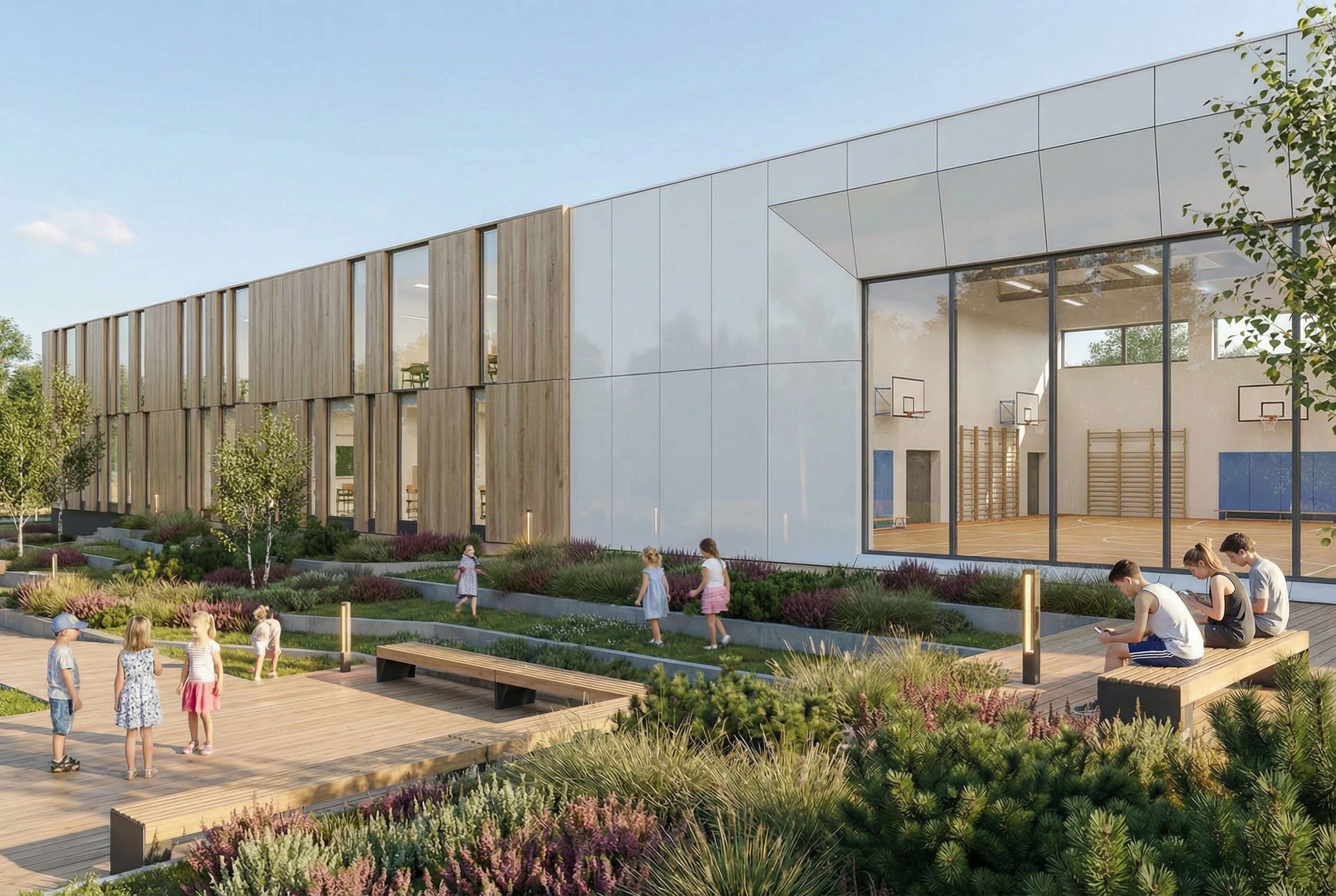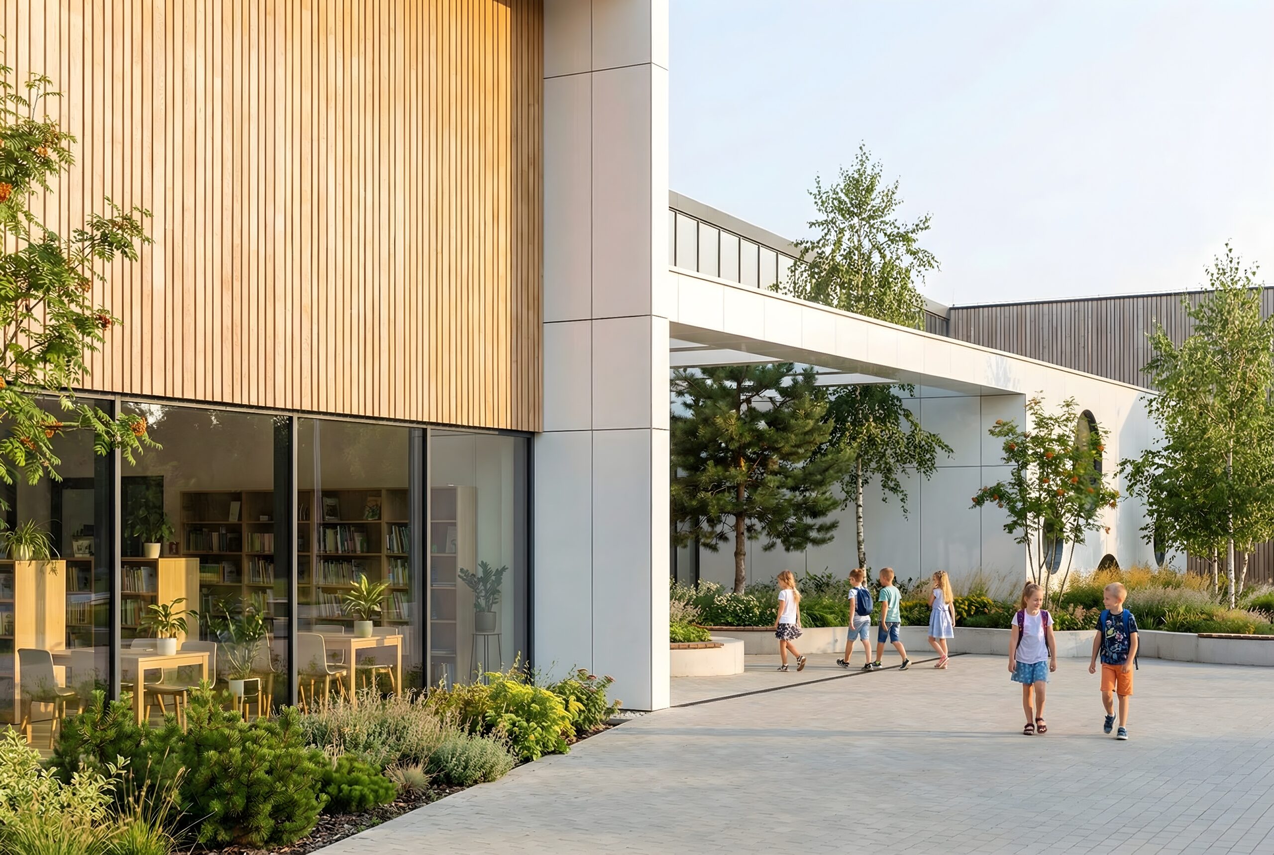 Zespół obiektów edukacyjnych – szkoła, przedszkole, biblioteka, obiekty sportu i rekreacji
