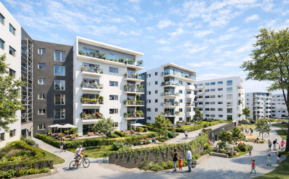 Architektura może stać się odpowiedzią na problemy społeczne i ekologiczne . Udowodniono już, że miasto rozproszone ma negatywny wpływ na życie społeczne i rodzinne. W obecnych czasach coraz bardziej postępują procesy dezurbanizacyjne oraz dezintegracyjne. Według Hartmuta Häußermanna żyjemy w czasach silnych tendencji dezintegracyjnych, również na poziomie sieci i relacji międzyludzkich. W społeczeństwach obecny jest strach przed rozpadem miasta i jego struktur. Ukształtowane w wyniku procesów suburbanizacji i dezurbanizacji miasto jest formą wewnętrznie podzieloną, zdefragmentowaną i nieczytelną. Współcześnie świadoma polityka miejska wymaga permanentnych działań dążących do reurbanizacji i reintegracji przestrzennej oraz społeczno-gospodarczej, do wzmacniania sieci komunikacyjnej oraz poszerzania pola relacji i współdziałania między grupami mieszkańców. Odpowiedzią na to jest koncepcja miasta zwartego – opartego na zwartej społeczności (compact community) oraz zrównoważonej mobilności. Osiedla mieszkaniowe powinny być kształtowane na wzór jednostek sąsiedzkich C. Perry’ego, zmodyfikowanych i przystosowanych do realiów XXI wieku. Sposób kształtowania części wspólnych powinien wpływać na intensyfikację kontaktów międzyludzkich i budowanie relacji sąsiedzkich. Kolejna kwestia to kształtowanie zabudowy wielorodzinnej i niskobudżetowych mieszkań na wynajem zgodnie z postulatami zrównoważonego rozwoju. Zabudowa taka powinna mieć zapewniony dostęp do komunikacji miejskiej, mobilizować ludzi do korzystania ze współdzielonych aut, a także rowerów i innych środków transportu. Bardzo istotnym aspektem jest też wspieranie lokalnej przedsiębiorczości, rozwijanie idei współdzielonych biur i home working. Efektem tego jest ograniczenie konieczności dalekiego przemieszczania się. Proces ten korzystnie wpływa na funkcjonowanie dzielnic miejskich i jakość życia mieszkańców. W działaniach projektowych powinno się zwracać uwagę, aby mieszkania spełniały wymogi, wedle których umożliwiają one prowadzenie domowego biura (np. według standardu opisanego w systemie BREEAM). Jednak zdajemy sobie sprawę, że na dłuższą metę praca tylko w domu może stać się nużąca i nieefektywna, dlatego też nowoczesne osiedla powinny dysponować powierzchnią coworkingową. Przestrzenie mieszkalne powinny umożliwiać kontakt z naturą. Jest to ważne nie tylko z powodu dobrego samopoczucia mieszkańców, ale również czyni takie osiedla płucami miasta. Dodatkowo powierzchnie zielone wspomagają system melioracyjny, przeciwdziałają lokalnym podtopieniom w wyniku ulewnych deszczy oraz wpływają korzystnie na obniżenie temperatury.