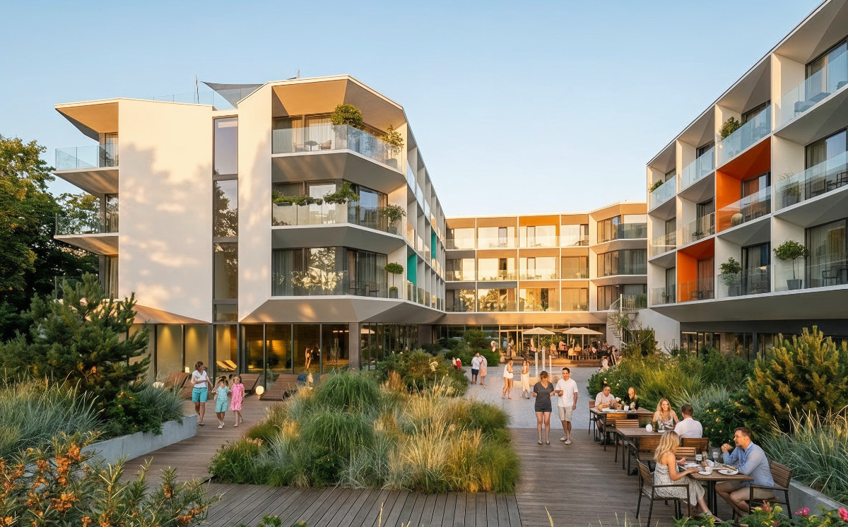 - realizacja części mieszkalnej wielorodzinnej jako tarasowe ogrody rekreacyjne na granicy terenów rekreacyjnych